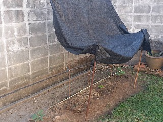 左苗がしおれている・・・ 遮光ネット張ってみる 左 新ゴーヤ植替え