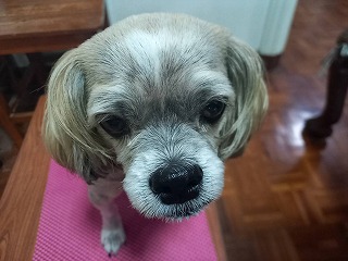 17時過ぎ夕食 ショウガのシイタケ煮込み 餃子 雷と少し雨 ルンちゃんビビっているなー・・・