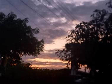 青空が見える中いつもの時間に散歩 途中で出会う92歳のおばあさんへドラゴンフルーツ2個差し上げる