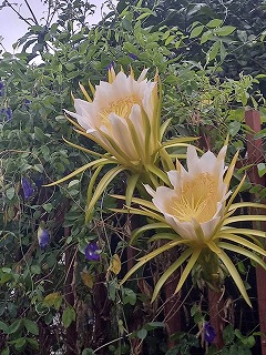 2025/08/27 水 朝のドラゴンフルーツの花 5個にはびっくり 時々雨・・・