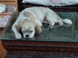 テーブルの上で気持ち良いのだろうが、いけないよー・・・