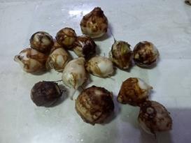 小さいけれど食べれない事は無いと収穫 芽が出ているのは植え返すとかなり15本ほど・・・