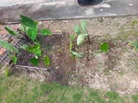午後の仕事と思ったが太陽が当たっている所が多く、前から気になっていた(里芋)掘り起こしてみる