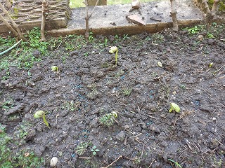 先日種蒔きした枝豆 芽が出た! オクラもうそろそろ終えんんだー・・・