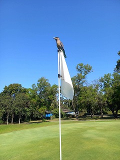 8番ショートでの旗の上に・・・インドブッポウソウ とあるが初めて見る鳥に感激だー! 色が素晴らしくきれいだ